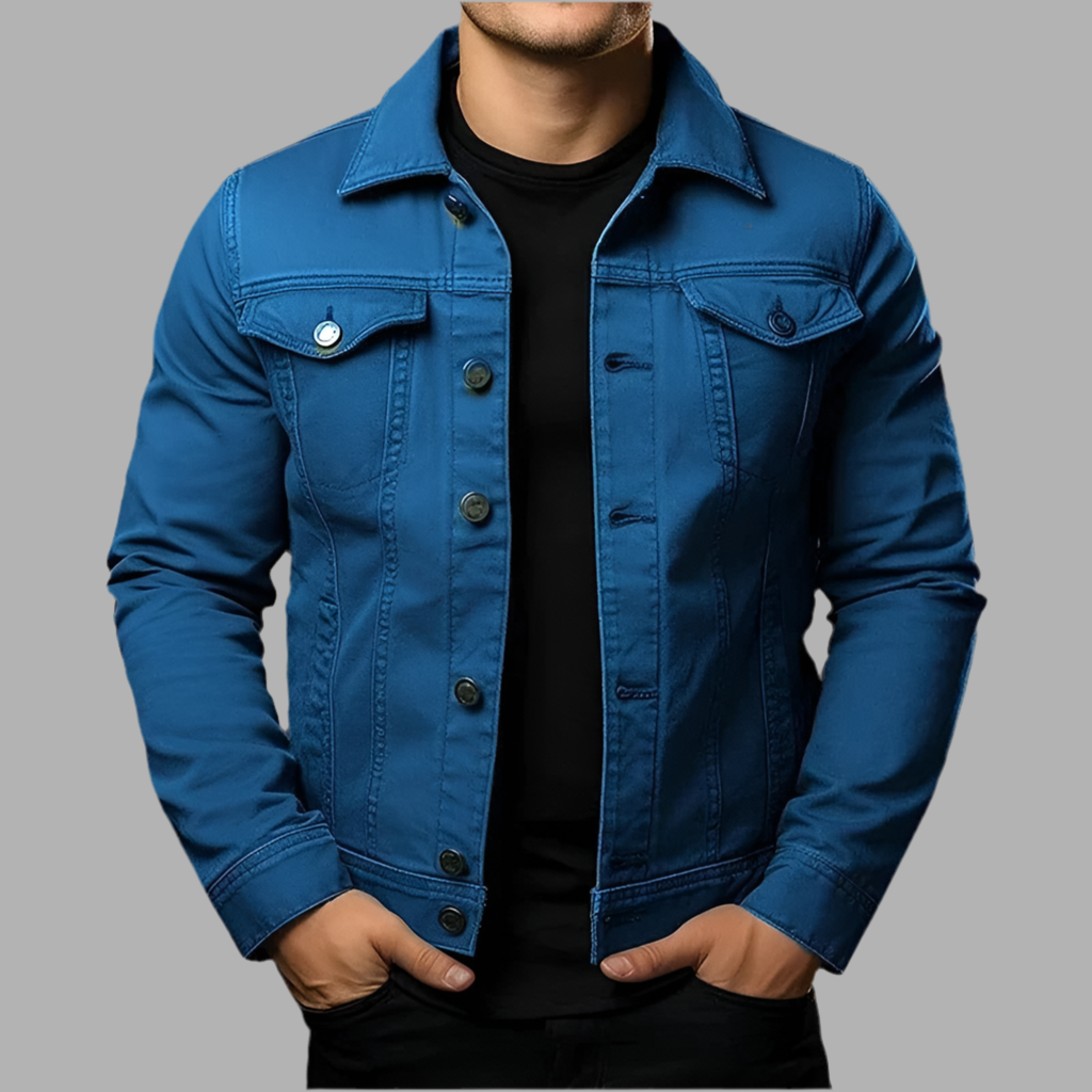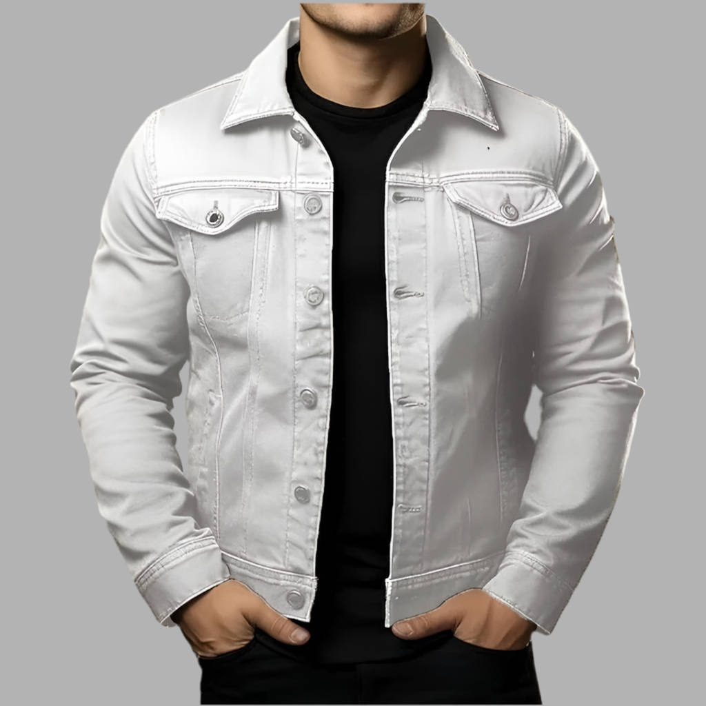 Herrjeansjacka med knappstängning och bröstfickor