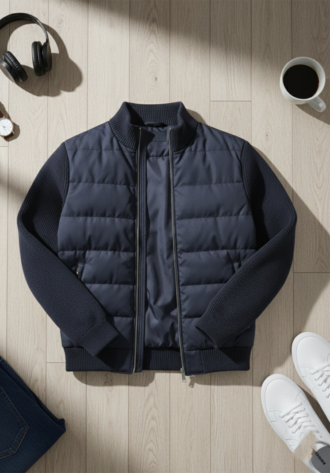 Hybrid Quilted Jacka med Ribbstickade Ärmar | Anton – Svart